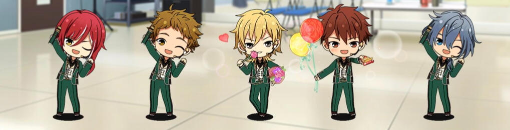 I care about this shuffle unit a lot. I love their event story, their song, and their interactions! They are constantly on my mind, so I'd like to make this site dedicated to them <3 Please click any of the chibis to take you to my thoughts and make sure to have the song playing as you look through hehe. Clicking the banners above will take you my Date Plan bot + its carrd.